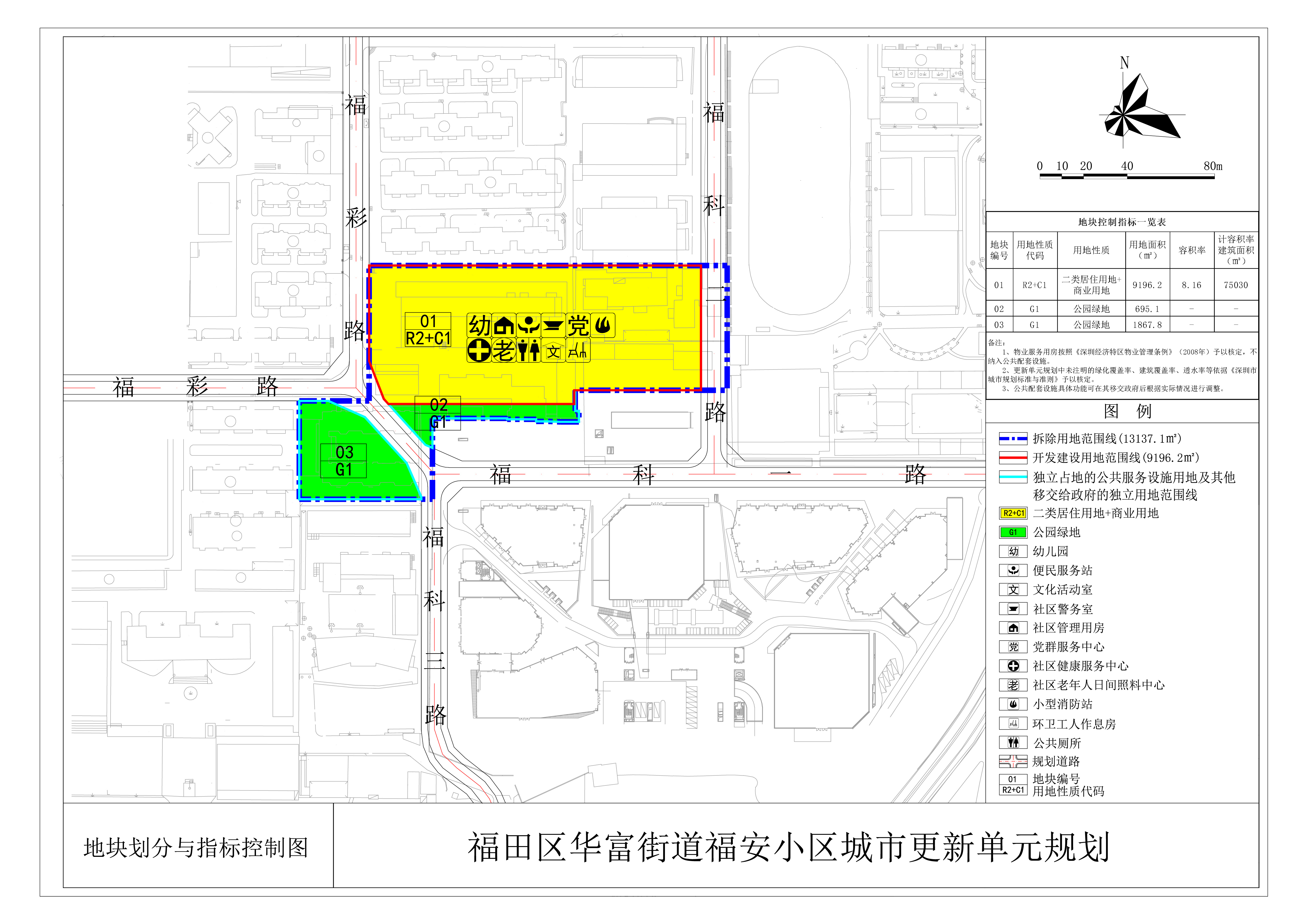 附图:《福田区华富街道福安小区城市更新单元规划》地块划分与指标控制图