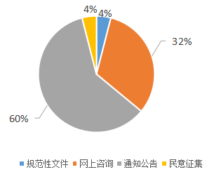 我局在工作中坚持“主动公开、高效便民”原则,依法主动公开政府信息,对机构职能、政策法规、规划计划等重要内容进行公开。2019年我局共公开政府信息25条,其中通知公告类信息15条,占总体比例的60%;网上咨询类8条,占总体比例的32%;规范性文件与民意征集各1条,占总体比例的4%。