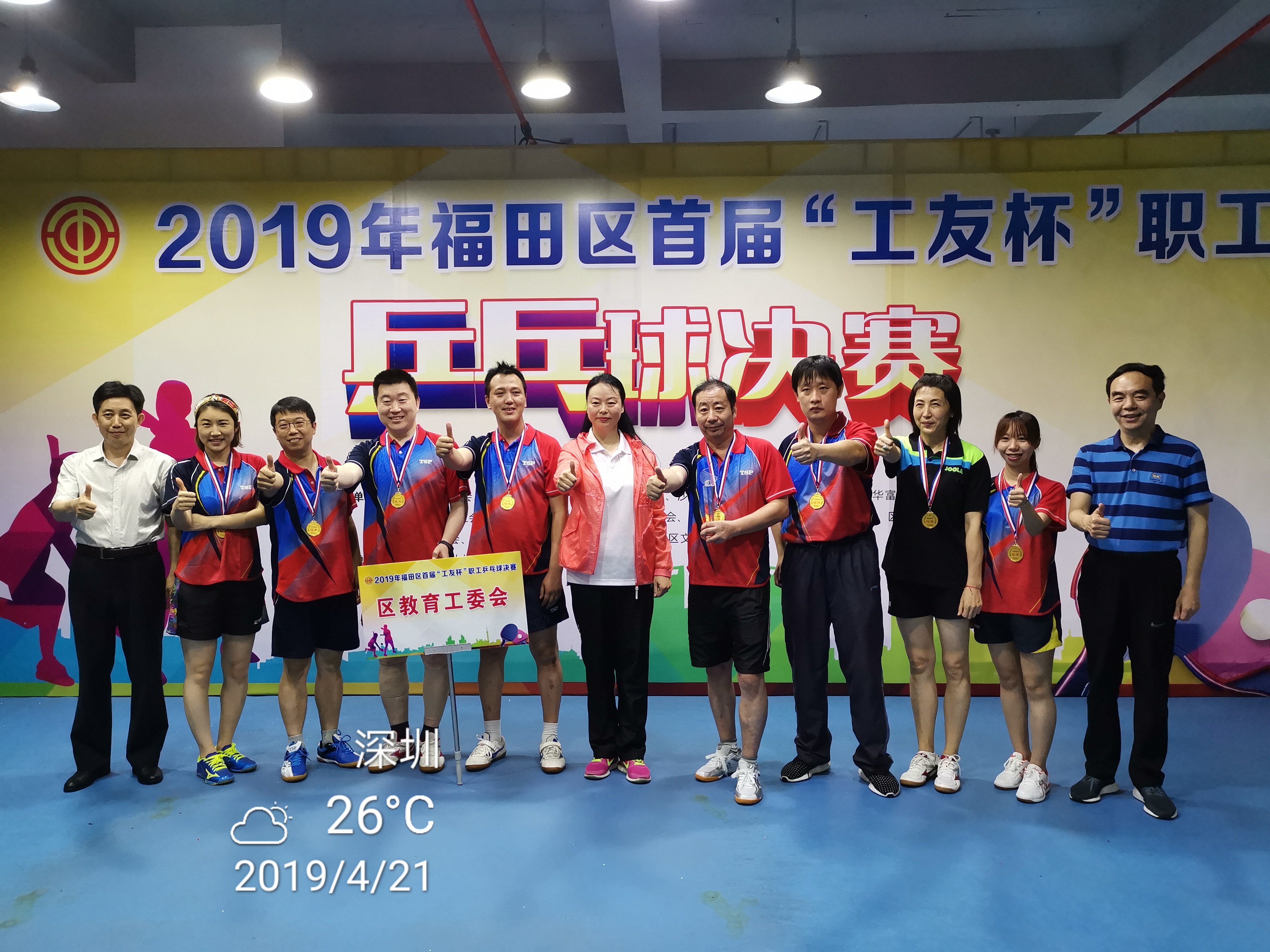 福田区教育工会乒乓球队勇夺福田区首届“工友杯”职工乒乓球赛冠军