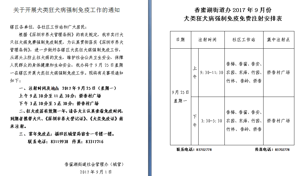 【爱犬人士大福利!】为从源头上防止狂犬病的发生,维护社会公共卫生安全,保障社区居民的身体健康和生命安全,香蜜湖街道社会管理办将组织人员为社区犬宠免费接种狂犬疫苗,欢迎爱犬人士携犬前往指定地点参与!