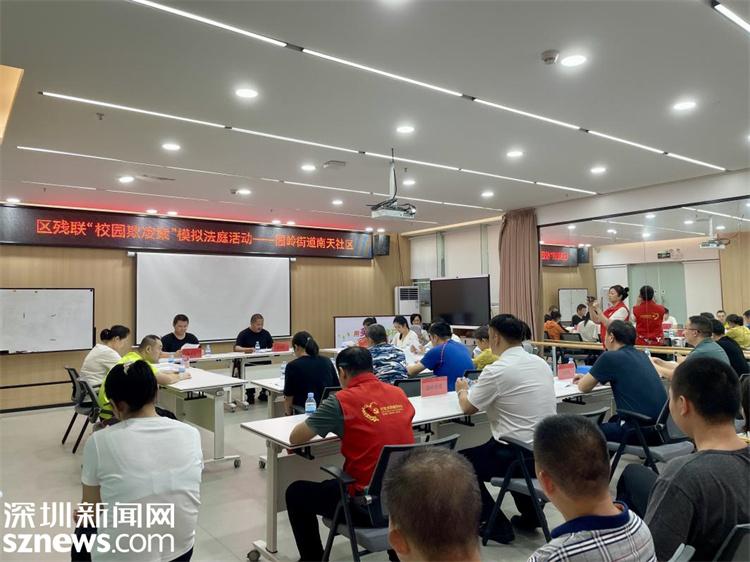 深圳新闻网2024年6月28日讯(记者 李昂徽)为深入普及残疾人法律法规知识,提高社区居民、学生及家长对校园欺凌事件的法律应对能力,6月27日,福田区残联在园岭街道南天社区党群服务中心举办了一场别开生面的校园欺凌案件模拟法庭活动。福田区残联党组成员、副理事长申晓东,园岭街道党工委委员刘鲲勇出席活动。