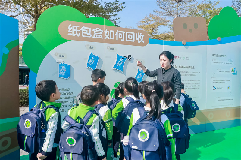 截至目前,深圳已有超1800所学校参与该项行动,共覆盖50万余学生,累计回收奶盒超1.4亿个,总重约1100吨。2023年6月,在城管、生态、教育、团委等多部门的协同推进下,发布了《深圳市奶盒回收减排碳普惠方法学(试行)》;2024年11月,完成了全国首笔1232吨奶盒回收碳普惠核证减排量交易;2025年11月,承诺将校园奶盒资源回收行动中产生的碳减排量捐赠给“十五运会和残特奥会深圳赛区碳中和项目”。