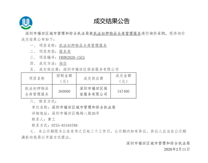 (执法扣押物品仓库管理服务成交结果公告)