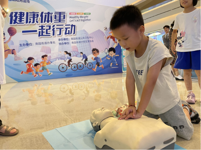 区别于传统的说教式健康宣教,此次活动现场以“互动+游戏”的创新方式,重构健康传播模式。在急救技能培训环节,一改往日单纯的理论讲解,采用培训和实操相结合的方式,吸引了众多群众积极参与。