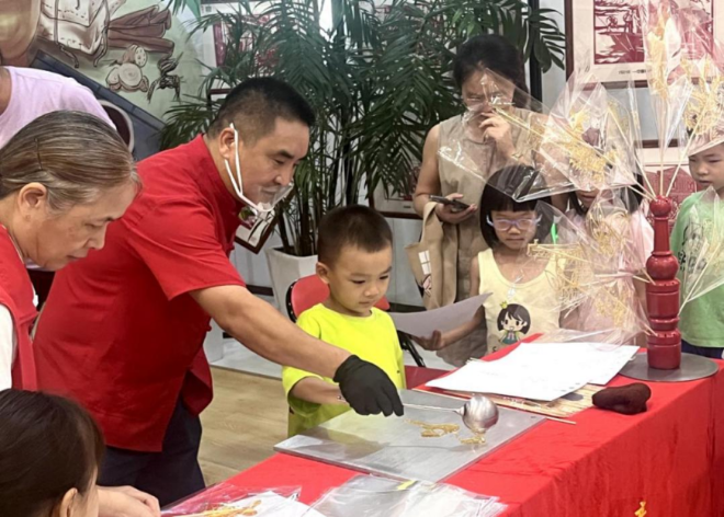活动伊始,糖画非遗传承人李老师向大家介绍了糖画的历史和制作技巧,并巧妙地将“廉洁”元素融入讲解之中。她说道:“糖画讲究火候恰到好处、一笔成型,就像做人做事,要守规矩、讲原则,不越线、不贪多。”孩子们在家长的陪伴下认真聆听,眼中闪烁着好奇与期待。