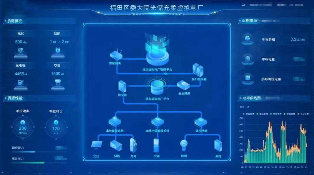 “虚拟电厂”的应用,不仅有效解决福田区委大院高负荷运行的瓶颈,用电负荷高峰期间的压降效率由原先的24小时以上,最多可以缩短到3分钟以内,实现新型能源的柔性调度管理和能源互济,也对于解决深圳老旧小区加装充电桩引起的容量不足、扩容改造工程复杂等问题,加速深圳推进新型能源体系建设也具有重要示范意义。