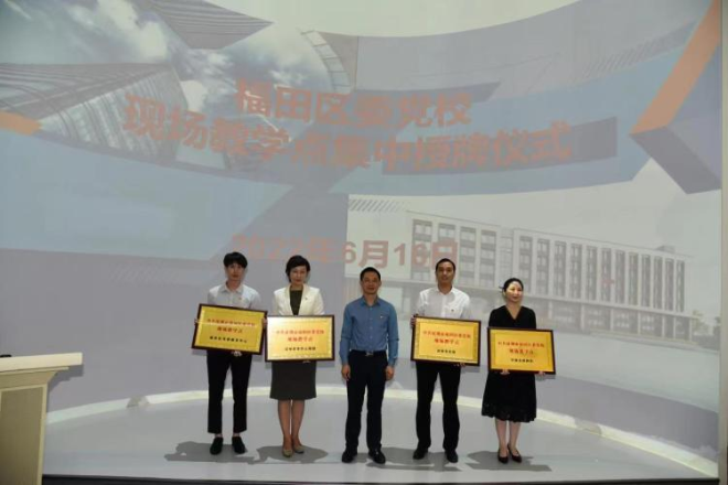为丰富干部培训内容,创新干部培训形式,打造“多彩”现场教学线路,近日,福田区委党校在深业上城元宇宙体验党群服务中心举行了现场教学点集中授牌仪式。区委组织部有关领导、区委党校领导班子成员和14家现场教学点的代表参加了授牌仪式。