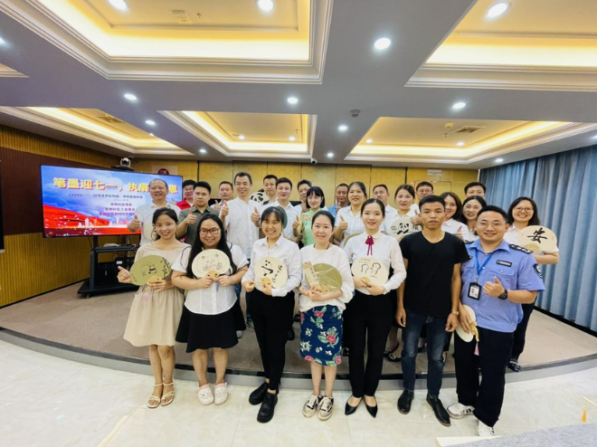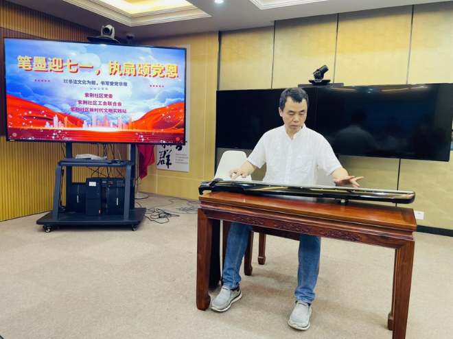 6月27日上午,莲花街道紫荆社区在社区活动室举办“笔墨迎七一 执扇颂党恩”书法文化体验活动,为辖区职工提供书法学习机会,拉近参与者与书法艺术的距离,在弘扬中华优秀传统文化的同时提升紫荆社区员工的幸福指数。活动由紫荆社区党委、紫荆社区工会联合会主办,深圳大学书法协会支持,深圳市山海琴堂文化传播有限公司承办,辖区职工30余人参与。