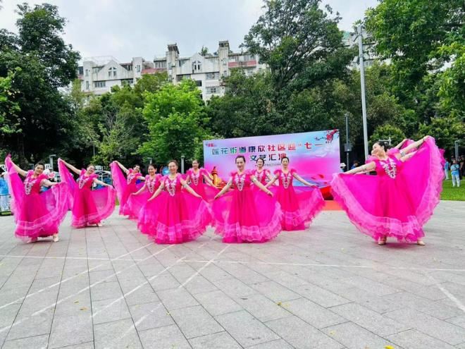 6月25日上午,福田区莲花街道康欣社区在景蜜公园举办幸福生活节暨“奋进新征程 建功新时代”迎“七一”专题文艺汇演。