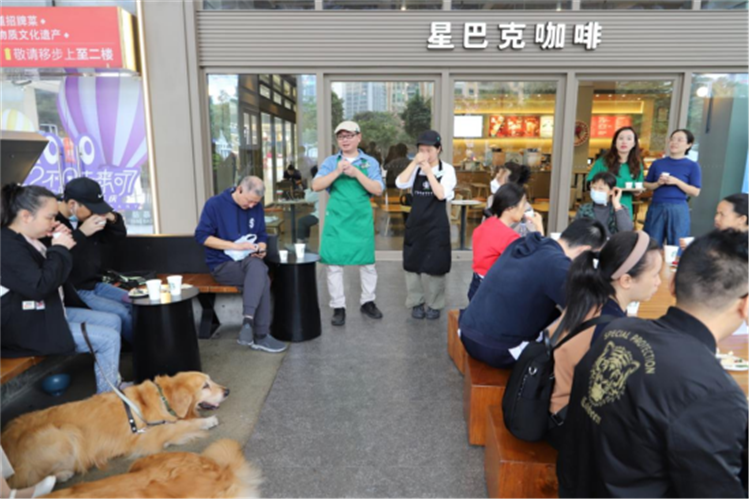 恰逢“国际残疾人日”和“深圳市无障碍城市宣传促进日”活动期间,为了让更多人了解导盲犬,关心视障残疾人,结合星巴克益田门店既是手语门店,同时也是宠物友好门店的特点,福田区残联与星巴克益田手语门店联合温馨社工驻益田社区党群服务中心团队精心策划本次活动,特邀3只导盲犬来到现场,视障残疾人、福保街道职康会员、星巴克天使伙伴、益田社区居民等近30人积极参与,福田区残联党组成员、副理事长麦越聪,福田区残疾人综合服务中心主任郑雁熙出席活动。