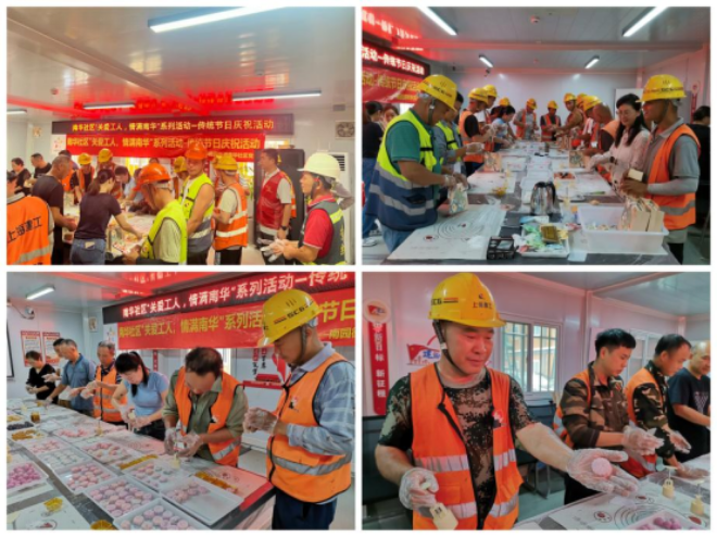 9月14日,南华社区联合中建三局南华村项目党支部、上海建工福萃苑项目部、中建八局滨河水质净化厂提标扩建项目党支部在各工地党群服务站开展“关爱工人,情满南华”——南华社区中秋节工地手工月饼系列活动,让奋战在社区建设一线的工友们充分感受到来自社区大家庭的温暖与关怀。