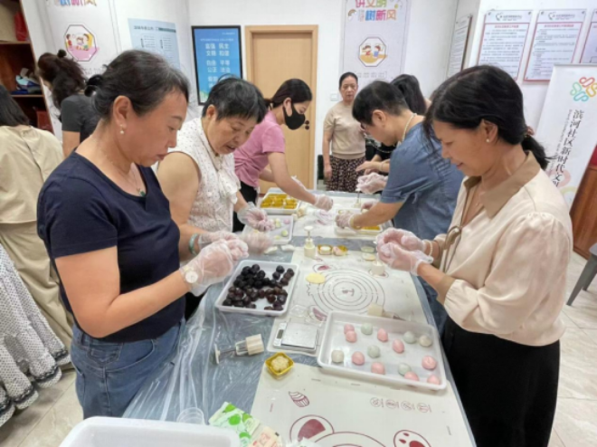 9月14日,滨河社区党委也联合南粤家政在滨河社区举办了一场温馨和谐的“情暖聚中秋,和睦邻里情”手工月饼制作活动。在经验丰富的老师指导下,居民们开始小心翼翼地尝试。不一会儿,一个个形态各异、散发着诱人香气的月饼就诞生了。看着自己亲手制作的月饼,居民们的脸上洋溢着自豪和喜悦的笑容。活动结束后,社区工作人员和老师不仅将制作好的月饼分给参与者,还留出一部分月饼分给社区内的孤寡老人、贫困家庭以及坚守在社区岗位上的工作人员,为他们送去了节日的祝福,让社区居民感受到满满的关爱与温暖。