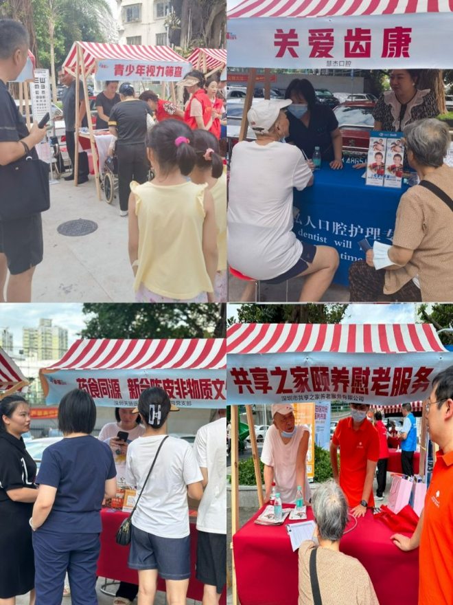 本着关心“一老一小”健康,此次园岭街道邀请了区政协机关、区人力资源局等联建共建单位,园岭街道机关各党支部、核电物业临时党委、深圳天骄医疗科技有限公司党支部等党组织,以及袋鼠眼科、慧杰口腔、共享之家等辖区内企业参与,设立了“青少年视力筛查”“药品安全科普宣传”“和谐劳动关系宣传”“心理咨询”“清洁能源科普”等15个摊位。