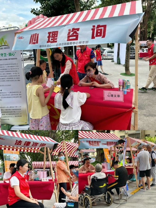 在法律咨询摊位上,面对居民提出的合同纠纷、婚姻家庭、邻里纠纷、车位纠纷等问题,党员志愿者们认真听取大家的疑问和诉求,在法律咨询过程中耐心开展释法说理,解答了居民心中的法律疑问。福田区人力资源协会党支部的“事心双解”—和谐劳动关系宣传,激发了众多个体经营者与劳动者的兴趣,面对企业用工、工资发放等问题,党员志愿者们耐心解答,让企业享受到免费的劳动用工“体检”,领取到管用有效的“用工良方”。