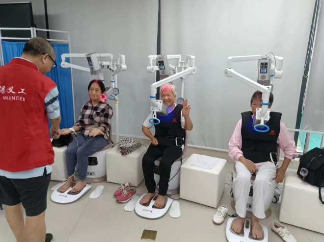 专职的中医康复理疗师面对面解答居民对健康的疑问,并根据检测信息,给每位居民匹配个性化的中医光子生态疗法,通过各类穿戴式的中医光子治疗设备,组成以“光-穴-药”组合为特色的现代中医外治解决方案,让居民在30分钟内实现了一次全身心的调理。