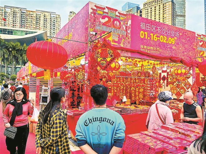 近日,沙头街道新洲社区携手新洲实业股份公司,把年货市集摆到了居民家门口。装饰喜庆的摊位、琳琅满目的商品……处处洋溢着浓浓的年味和“烟火气”。新洲社区年货节有50多个摊位,以年货为主,融合了春联剪纸、趣味游乐等多种形式,为居民提供丰富的选择。