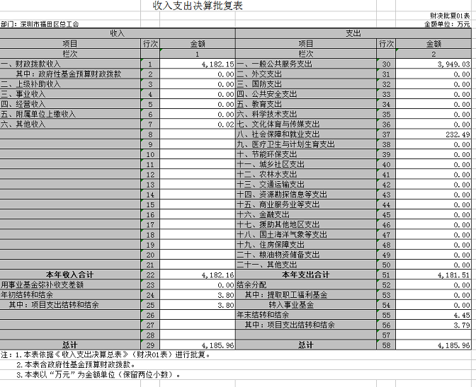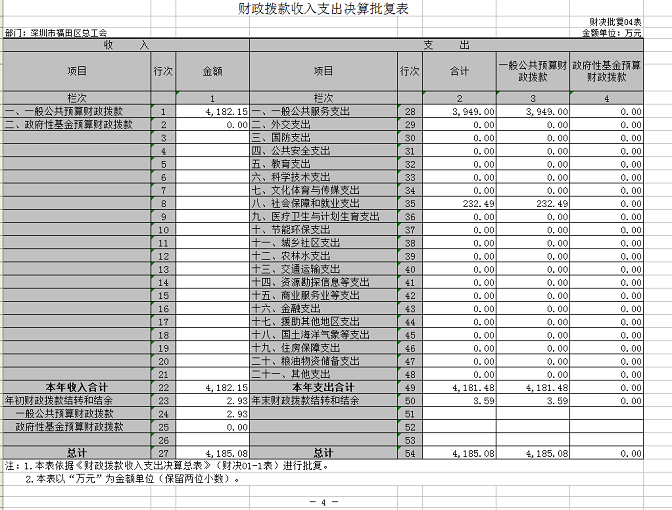 二、福田区总工会年度部门决算表