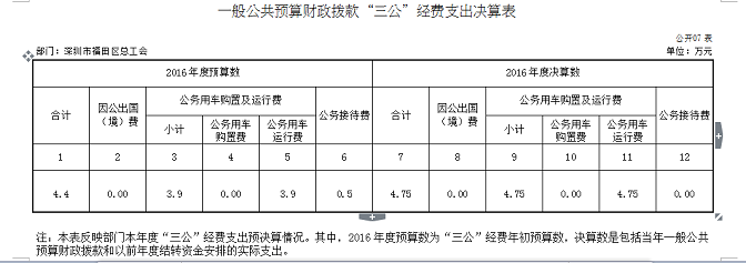 福田区总工会2016年度部门决算情况