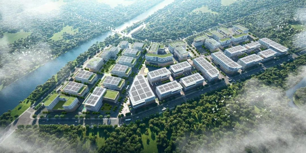 园区规划面积1173亩,项目用地300亩,首期100亩。将于明年竣工的首期产业园总建筑面积约11万平方米,共21栋(其中20栋厂房,1栋配套食堂宿舍),独栋4100平方米,双拼厂房8000平方米,配套面积约10000平方米。