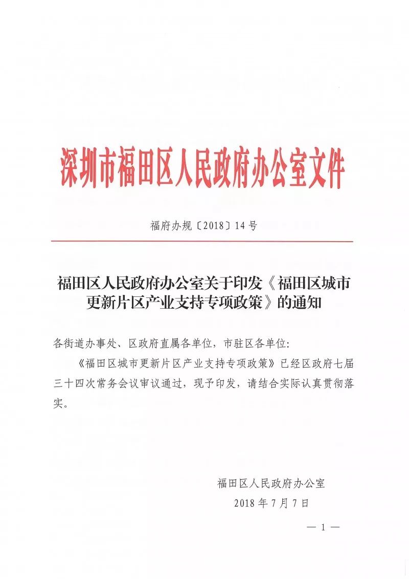为科学有效地加快推进城市更新,同时做好安商稳商工作,避免优质企业流失,实现产业结构转型升级。福田区今日正式出台了《福田区城市更新片区产业支持专项政策》(福府办规〔2018〕14号),并将率先在车公庙城市更新片区推广试行。此次将产业政策与城市更新政策相结合的举措,在全国范围内尚属首创。