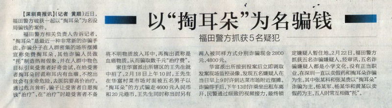 以“掏耳朵”为名骗钱——《深圳商报》2017.2.24 A07版
