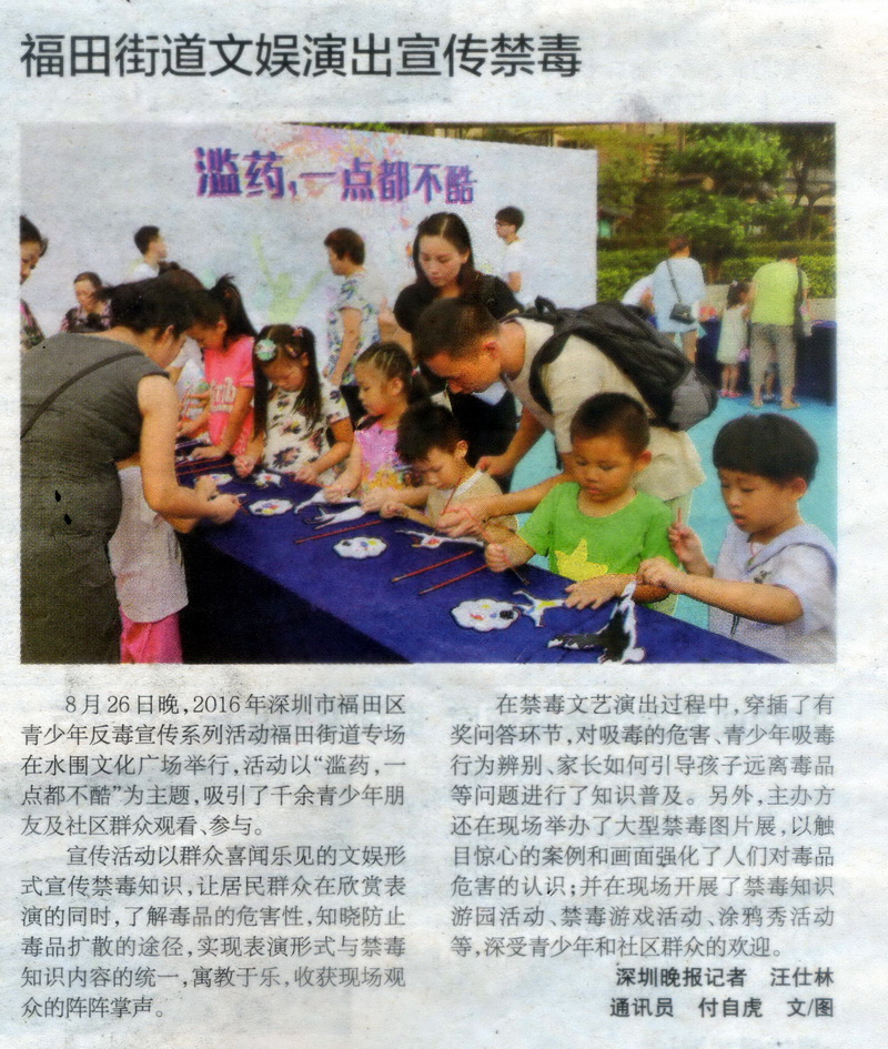 福田街道文娱演出宣传禁毒——《深圳晚报》2016.8.28 08版