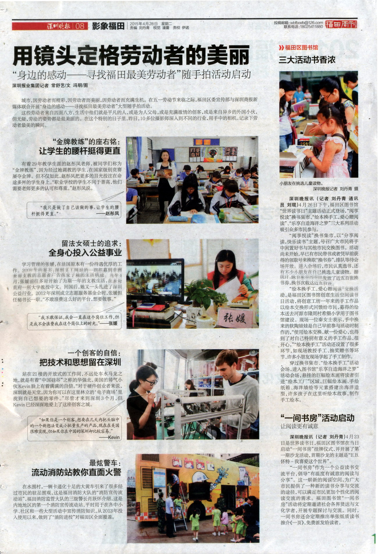 用镜头定格劳动者的美丽——《深圳晚报》2015.4.28 08版
