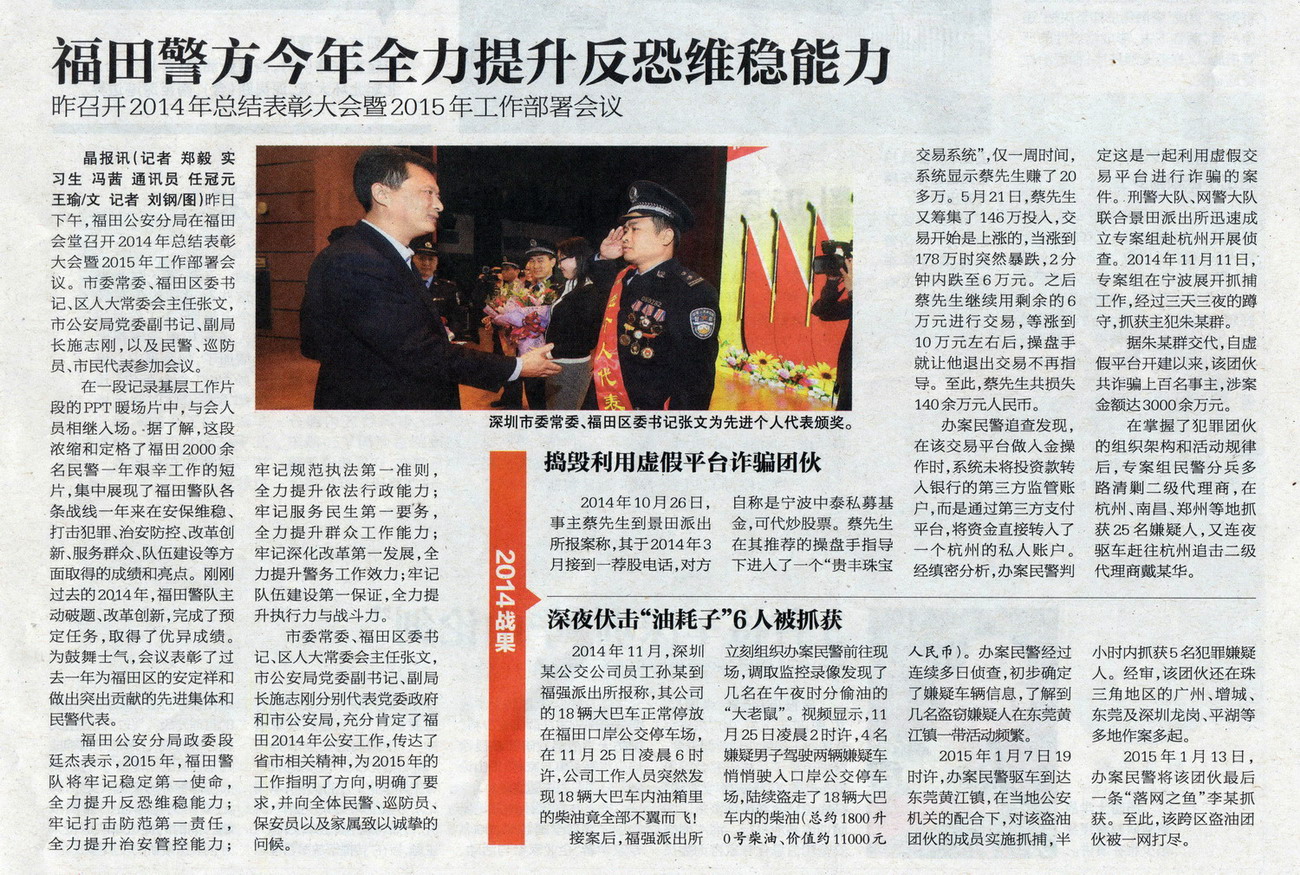 福田警方今年全力提升反恐维稳能力——2015.1.20 A11版《晶报》