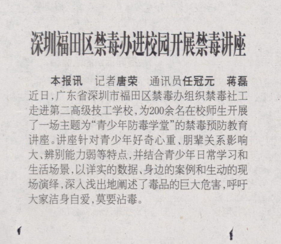 深圳福田区禁毒办进校园开展禁毒讲座——2021.3.10《法治日报》08版
