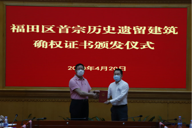福田区首宗确权历史遗留建筑获颁证书