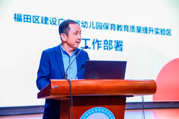 在主会场上,福田区教育局二级调研员陈振强重点解读《福田区建设广东省幼儿园保育教育质量提升实验区实施方案》,并详细部署了实验区建设工作。