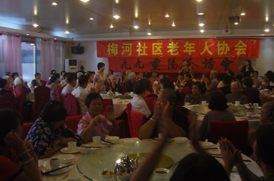 10月11日,梅河社区老年协会举办了重阳节老年人茶话会,社区党委书记、老年协会班子成员和100余名老年协会会员参加了会议。