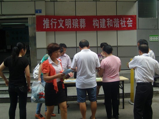 2013年10月12日,梅河社区在社区工作站门口开展了重阳节殡葬改革宣传活动,社区工作站长带领工作人员一同现场宣传并发放宣传资料及宣传品,向群众宣传殡葬改革意义及好处,推行绿色殡葬,改善生态环境,保护土地资源,净化人们生活环境,做到家喻户晓、人人皆知,让广大群众理解,自觉参与和支持殡葬改革活动。