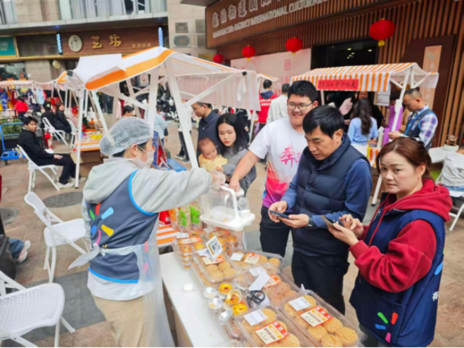 近日,一场年味浓郁、热闹喜庆的新春市集在福田区南园街道文体中心广场温情启幕。本次市集以“马住年味,南园新春市集开Fun啦”为主题,由南园街道党建办、经发办(企服部)统筹指导,赤尾社区党委牵头承办,联合多个社区党委,携手沃尔玛、南园商会等8家企业和社会组织,精心打造“龙马精神——游乐汇”“福满乾坤-纳福阁”“年味食足——好物集”三大主题区域和13个特色摊位,吸引超1000名居民逛市集、品年味、迎新春。