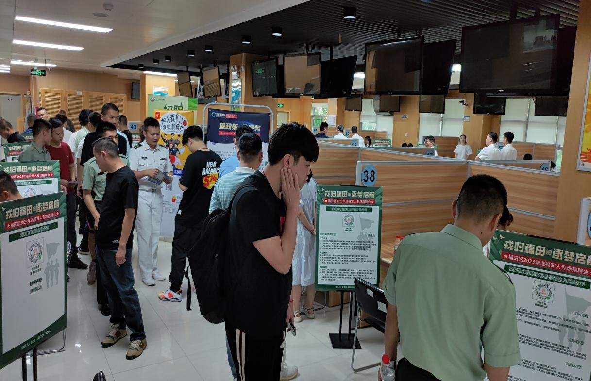 福田区退役军人事务局“2023年退役军人专场招聘会”于现场同时举行,本次招聘会共开设展位近百个,参与人数近两百人。