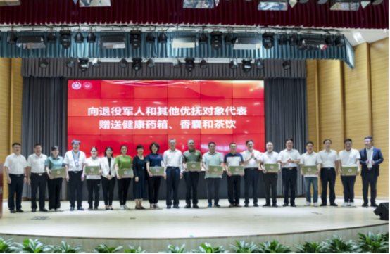 仪式结束后,深圳市退役军人事务局联合广州中医药大学深圳医院(福田)开展深圳市2024年度“关爱功臣·送医送药”活动,现场为退役军人和其他优抚对象代表赠送健康药箱等慰问品,组织开展公益义诊活动。
