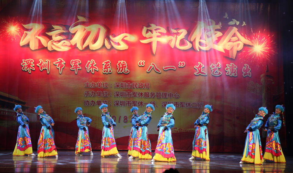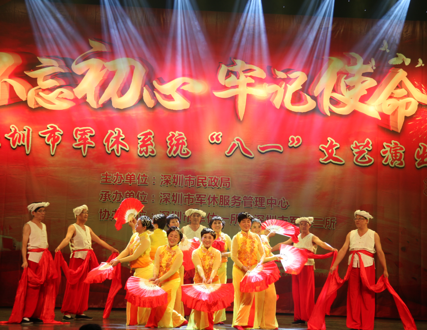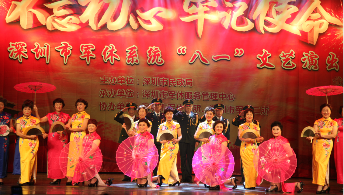 为庆祝“八一”建军节,丰富和活跃军休干部的精神文化生活,展示军休干部在深圳安享晚年多彩的精神风貌和艺术风采,扩大军休工作的社会影响,打造深圳军休文化品牌。2018年7月26日下午,我市军休系统举办了“不忘初心、牢记使命”八一文艺演出。