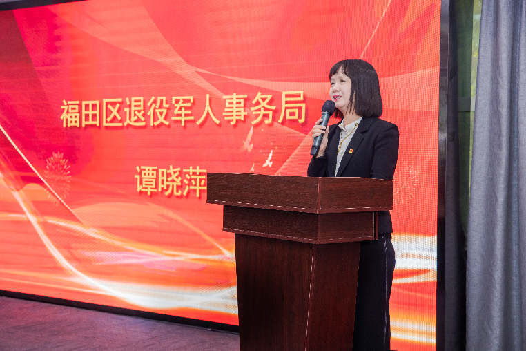 随后,四级调研员谭晓萍代表福田区退役军人事务局致辞,向光荣退役的士兵们致以热烈的欢迎和诚挚的问候,她表示:“经过部队的锻造,大家已经成长为思想、作风、能力过硬的高素质人才。党的二十大胜利召开,吹响了全面建设社会主义现代化国家、实现第二个百年奋斗目标的号角。在这个重要历史机遇期,福田作为“中心城区”,正加快全面建设社会主义现代化典范城区,为大家提供了施展才华的广阔舞台,期待大家在人生新的起点上,能有新的作为。”