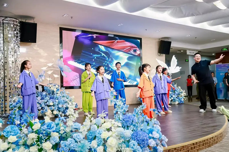 音乐主题馆合作运营方负责人、中社通(深圳)文化发展有限公司负责人进行焕新推介,全面介绍升级后的场馆功能布局、服务内容与体验场景,让与会嘉宾与市民提前感受全新音乐文化空间的魅力。据介绍,场馆创新“双团队+平台化”合作模式,完成从单一音乐场馆到全龄艺术空间的蜕变:一楼打造绘本阅读、音乐直播、智慧钢琴、智慧健身、惠民水吧等配套,亲子共读、民乐录制、公益健身、AI琴课同步开展;二楼设有创客空间与无人机足球区,木作体验与科技竞技充满活力;三楼布局书法、舞蹈、合唱排练、口才、美学空间,民乐合奏、瑜伽理疗、艺术手作氛围浓郁;四楼将闲置平台改造为户外休闲区、高尔夫启蒙区与星空泡泡屋,手碟培训、亲子休闲温馨治愈,全楼层沉浸式场景覆盖全年龄段,便民服务与文化体验全面焕新。
