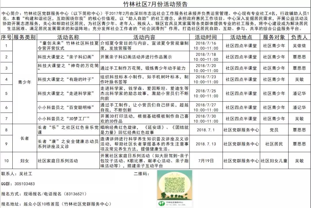 竹园社区7月份活动预告