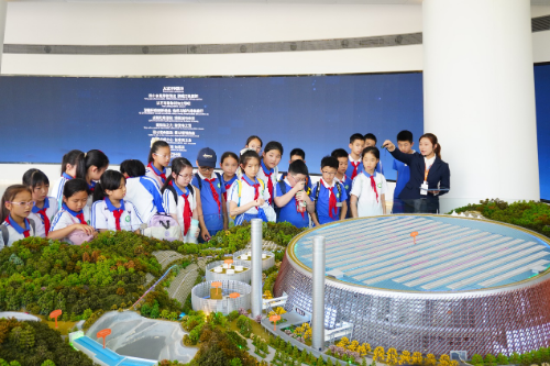 “原来垃圾焚烧厂可以像科技馆一样酷!”踏入龙岗能源生态园,学生们瞬间被充满未来感的展厅吸引,先后参观了“深能印象”莲影之境数字艺术馆、“数控之眼”中央控制室、“命运与共”数字空间和深能环保之核、“生态绿谷”环保之路和智能吊控模型等主题空间,了解到垃圾从进场、卸料、发酵、焚烧以及后续经过高科技实现无害化处理等过程。