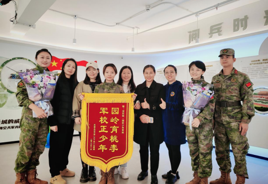 全市首个街校共建国防教育实践基地——深实验・园岭少年军校顺利建成。近650平方米的基地内,VR模拟战机驾驶、激光模拟射击、阅兵时光轴等沉浸式体验项目,让国防教育跳出书本、融入生活。深圳实验学校初中部家委专程赠予“园岭育桃李・军校正少年”的锦旗,更是对家校社协同育人的最暖心诠释。