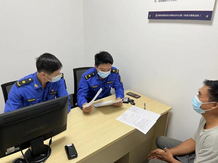 二中队执法员根据福田区创文工作要求,对问题进行逐一整改,并对辖区市容环境卫生、公共秩序、等创文问题进行日常巡查,巡查中发现的问题均当场整改完毕。二中队负责人高剑彪、执法员廖国超根据外勤人员巡查时发现的园岭二街两宗公共场所乱扔烟头线索,对两位违法行为人进行调查询问。在执法人员出示相关证据后,违法行为人认识到了自身的错误,承诺今后不会在公共场所乱扔烟头,并缴纳罚金。