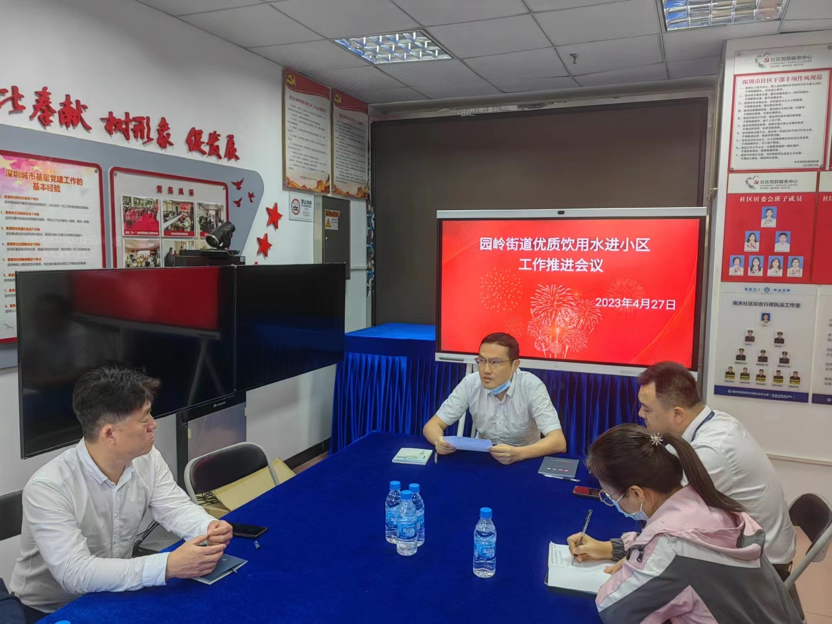 27日,三中队负责人李冀在南天社区参加园岭街道优质饮用水进小区工作推进会。区水务局负责同志表示优质饮用水入户工程在园岭街道白沙岭片区有13个点需占用人行道开挖,五一期间开始施工,计划七月份结束。三中队负责人李冀强调优质饮用水施工方需做好施工围挡及周边卫生。