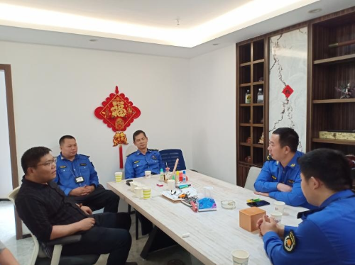 执法队副队长曹保成、二中队负责人高剑彪和执法员宋志鹏到长源楼约谈中洲物业管理处现场负责人推进白沙岭游泳馆违法搭建物的拆除进度,接下来将继续跟进。