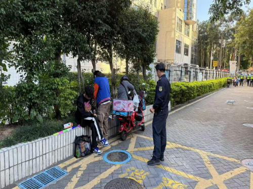 3.接民意速办平台投诉工单,三中队执法员约谈八卦岭宿舍区物业管理处14栋负责人,督促其加强临街楼栋外立面管理,及时清理违规广告,维护外立面整洁。接市民电话投诉,三中队队员前往盛世鹏程幼儿园,清理周边乱摆卖摊贩,保障道路通畅。