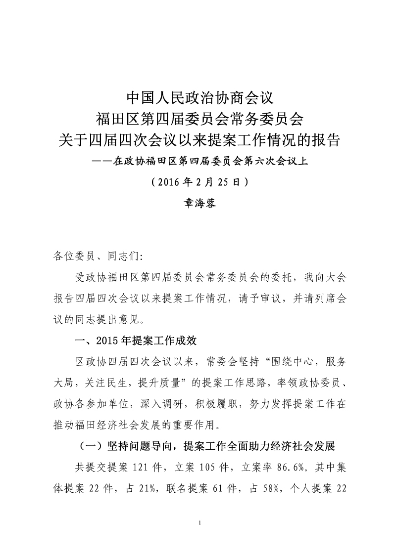 【全会专题】提案工作报告
