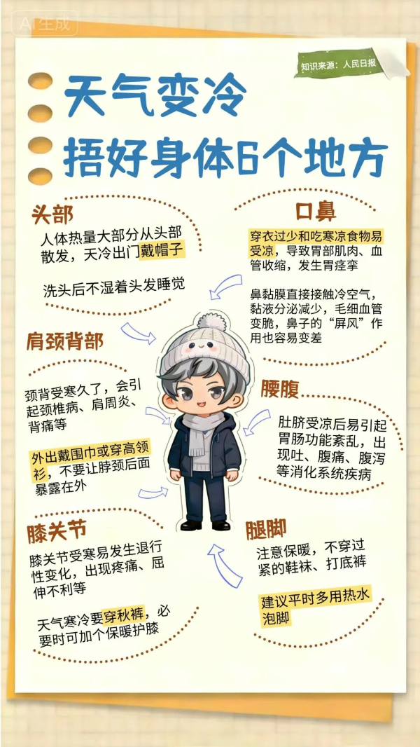 天气寒冷时一定要捂好的6个地方