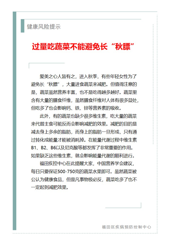 健康风险提示—过量吃蔬菜不能避免长“秋膘”