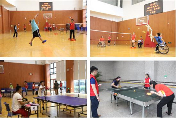 本届乒乓球、羽毛球友谊赛采取淘汰赛制,乒乓球比赛包含了肢体、听力、精神、智力、视力等各类别的共8 个组别;羽毛球比赛包含了肢体、听力、精神、智力等各类别的共 8 个组别,参加活动的有运动员、工作人员和义工朋友共 120 多人次。上午九点,乒乓球比赛准时开始, 61 名运动员展开了激烈的角逐,赛场上球员们奋力拼搏,乒乓球台上势均力敌相持不下;下午两点羽毛球比赛又按时开赛, 64 名运动员参加了比赛,羽毛球场上的势大力沉的扣杀、轻盈灵巧的吊球,无不反映着这是一场较高水平的体育比赛。两场比赛都精彩纷呈,运动员们克服自身的不利条件,用汗水努力拼搏到最后一刻,一幕幕扣人心弦的片段不断呈现,使比赛场上掀起一波又一波的高潮,引得场外阵阵喝彩和热烈的掌声。